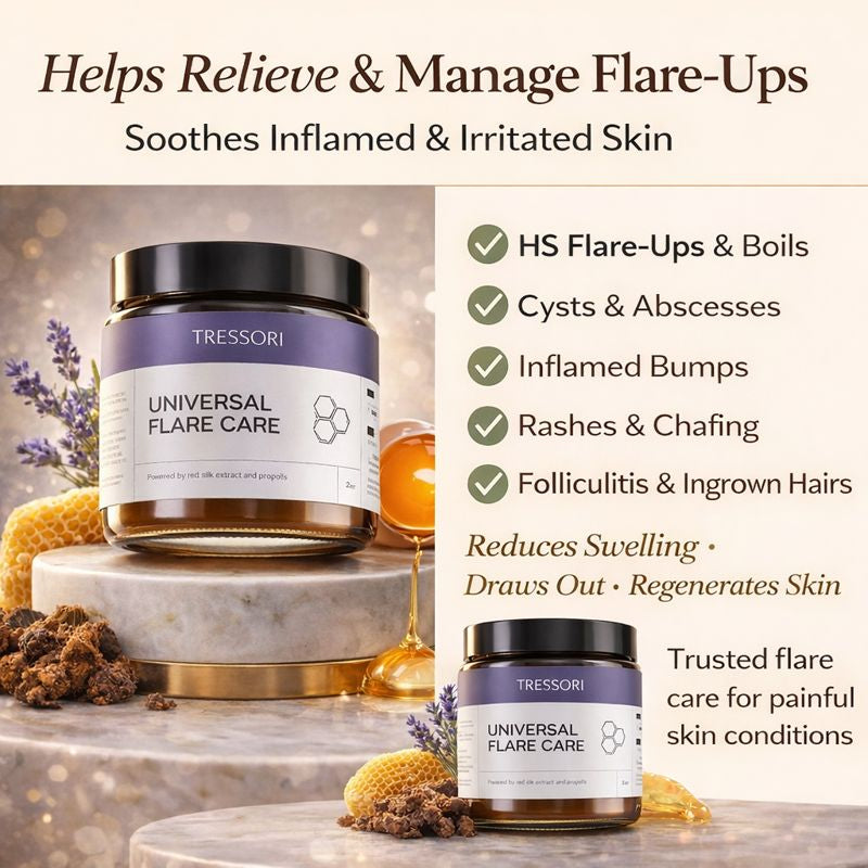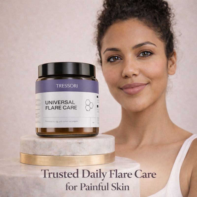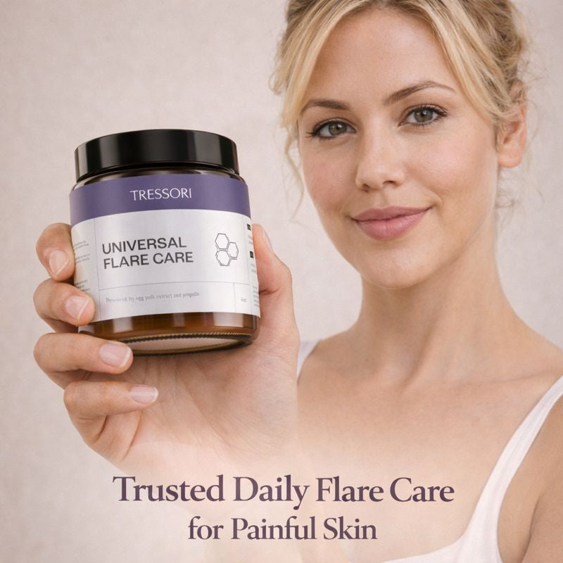 With consistent use, skin feels calmer, looks less inflamed, and becomes more resilient over time. TRESSORI Universal Flare Care helps you regain control over flare-ups without harsh ingredients — just steady, supportive healing your skin can trust.